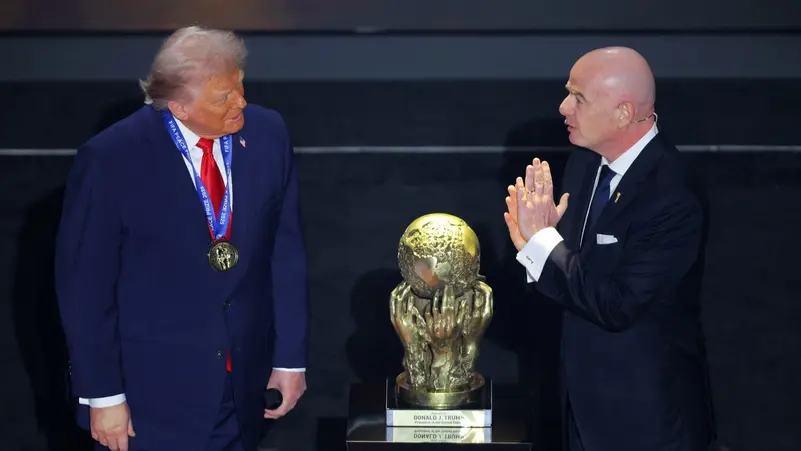 وتسلّم ترامب ميدالية وكأسًا ذهبية من رئيس فيفا جياني إنفانتينو تقديرًا لجهوده في إنهاء الصراعات حول العالم، وقال: إنه حقًا أحد أعظم تكريمات حياتي، العالم أصبح مكانًا أكثر أمانًا الآن. لم تكن الولايات المتحدة في وضع جيد قبل عام، أما الآن فنحن الدولة الأكثر ازدهارًا في العالم حاليًا.”